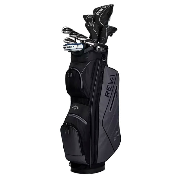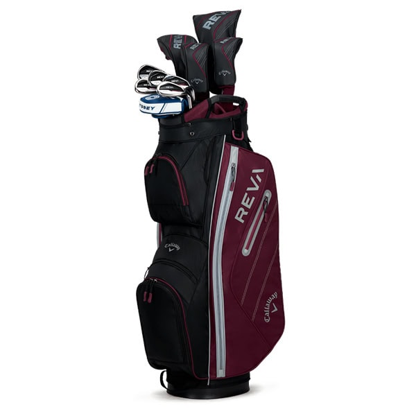 El nuevo set Callaway REVA de 11 piezas de Callaway, la marca número uno en equipamiento para mujeres, está diseñado pensando en un rendimiento superior. Esta oferta completa está diseñada para mujeres de todos los niveles que desean aumentar su distancia, hacer buenos tiros y disfrutar del juego más que nunca. Este juego incluye: Driver, 3 Wood, 5 & 6 Hybrids, 7 a 9 Irons, Pitching and Sand Wedge, Putter, Cart Bag y (5) Headcovers.